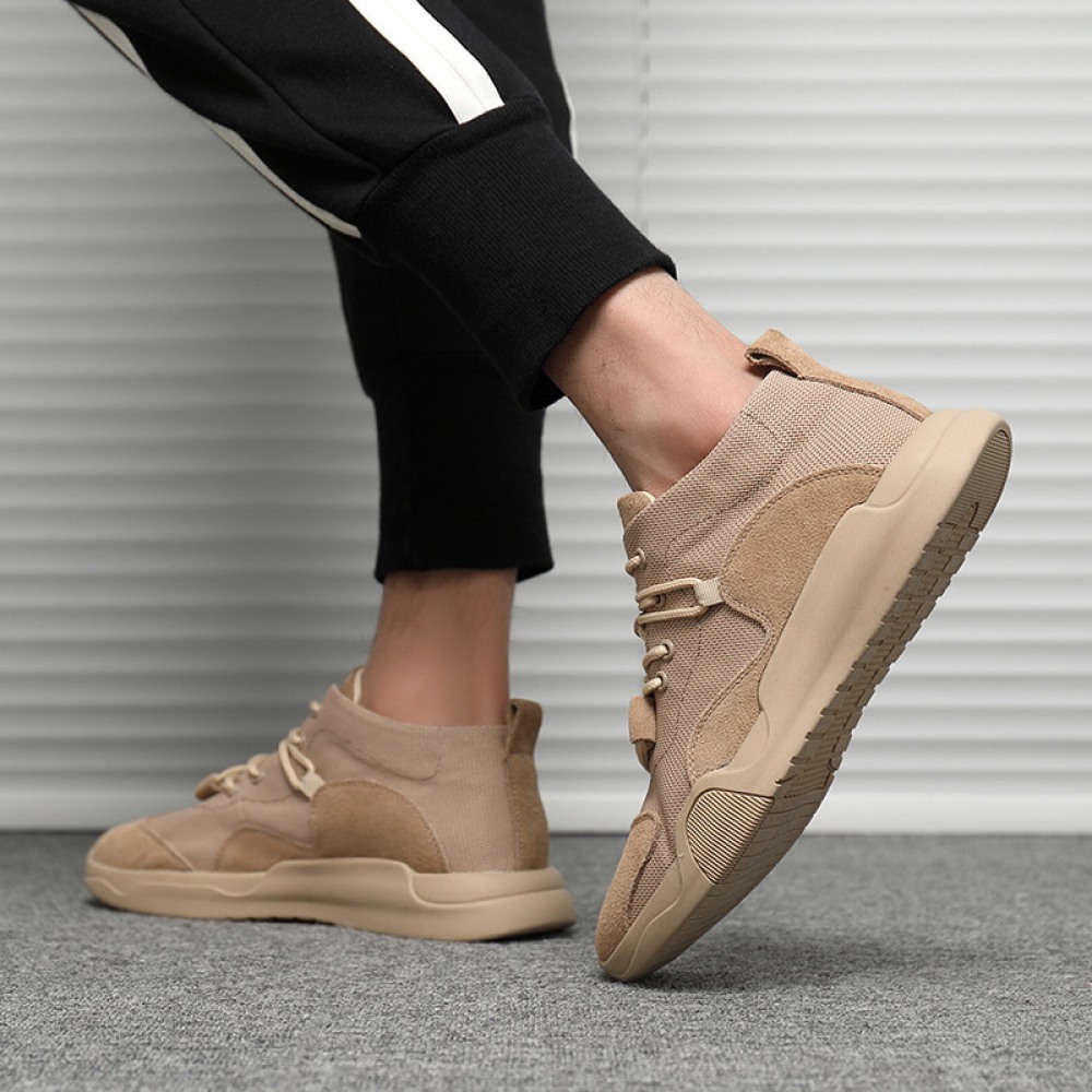 Casual Sports Shoes Leather Breathable Mesh Shoes Explosion Models Mesh Stitching Men's Trendy Sneakers